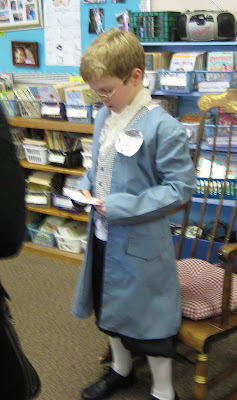 Jake just had a big project at school. Every year the 3rd graders create a "Wax Museum". Each of the kids study and learn about a famous person. The kids get to choose who they want to learn about. We get biography's from the library and learn all we can.